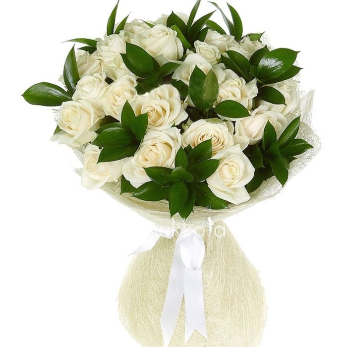 Bouquet of 25 white roses.