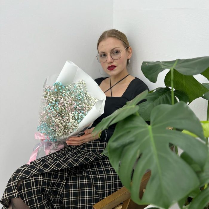 Гипсофила – 3 шт.Лента – 2 шт.Пленка прозрачная – 1 шт.