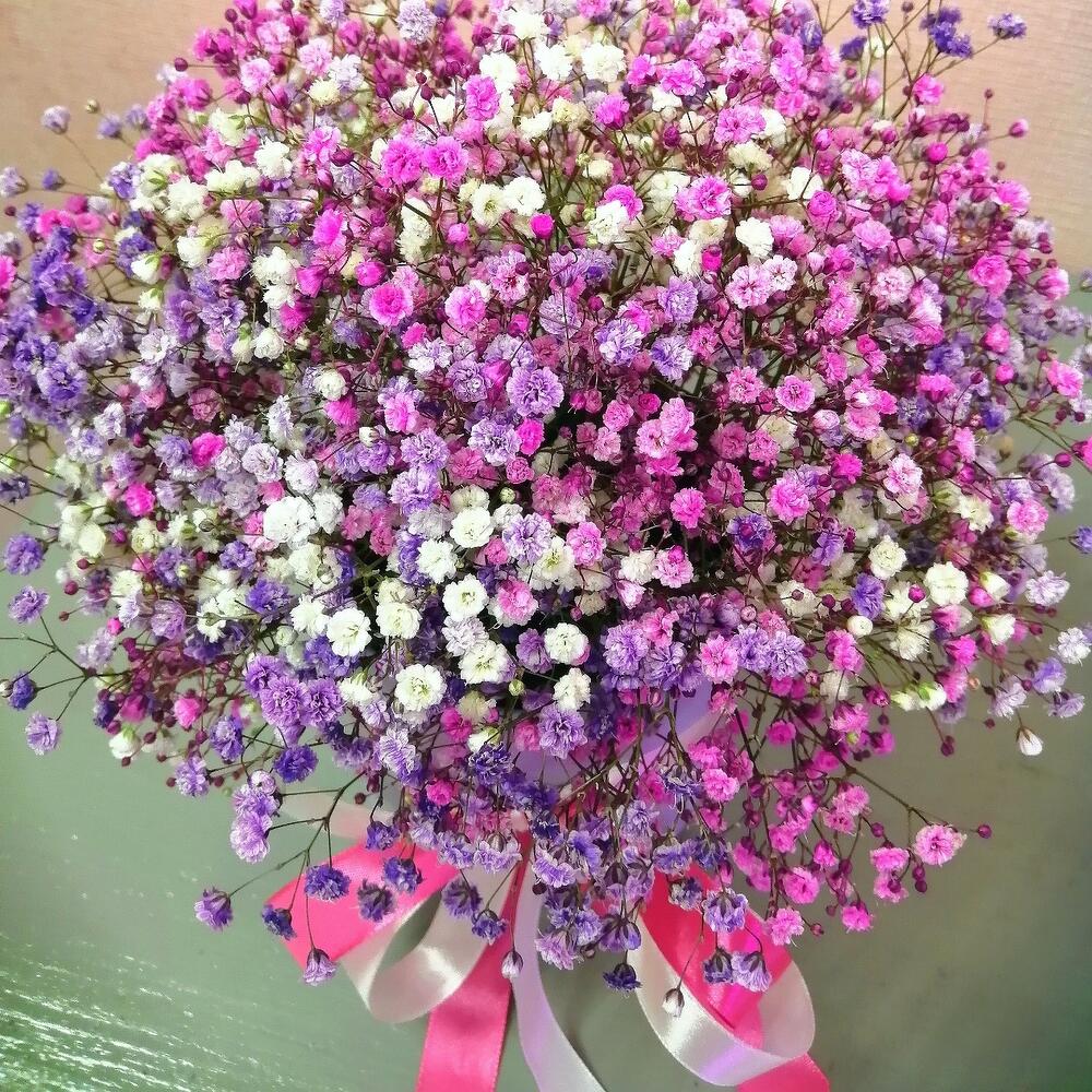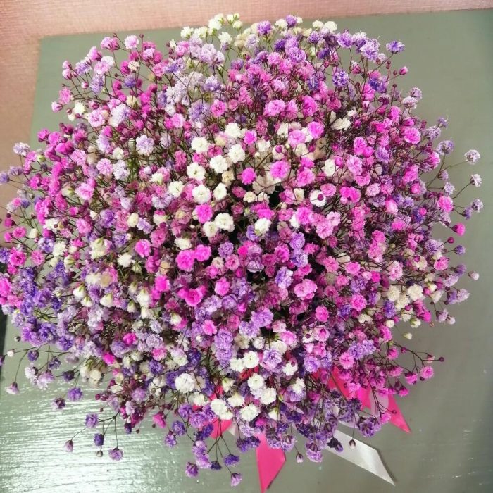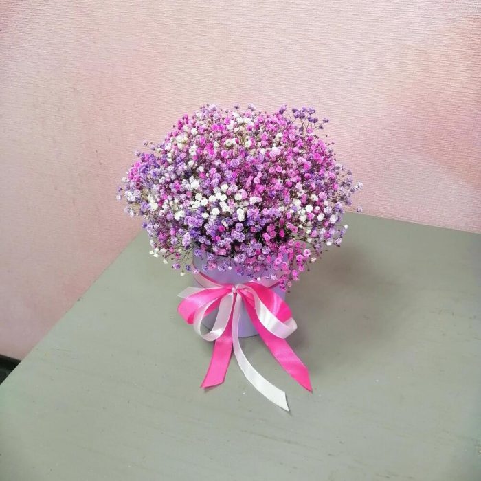 Оазис флористический – 1 шт.Коробка шляпная малая – 1 шт.гипсофила радужная – 4 шт.