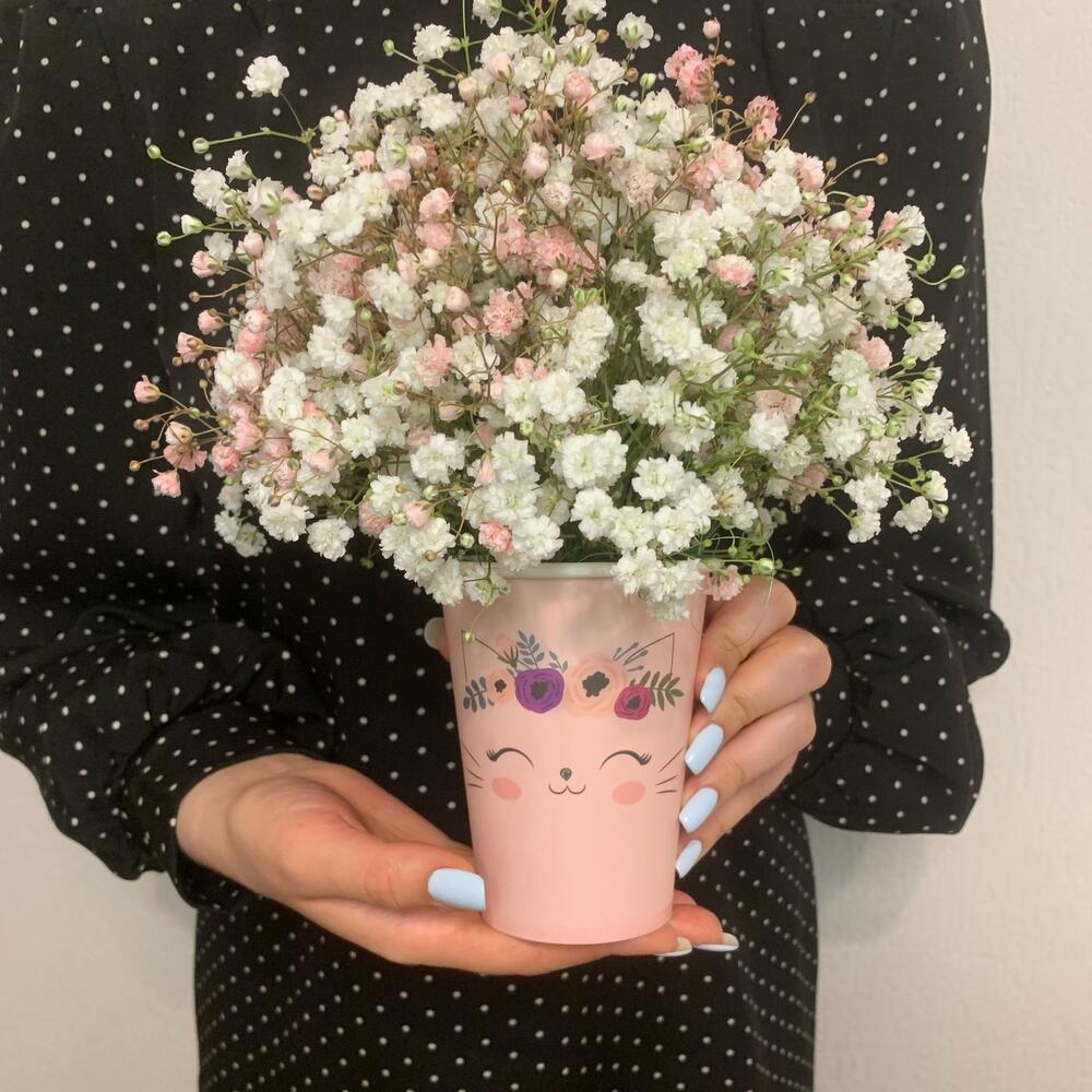 Гипсофила – 4 шт.стакан кофейный – 1 шт.Оазис флористический – 1 шт.