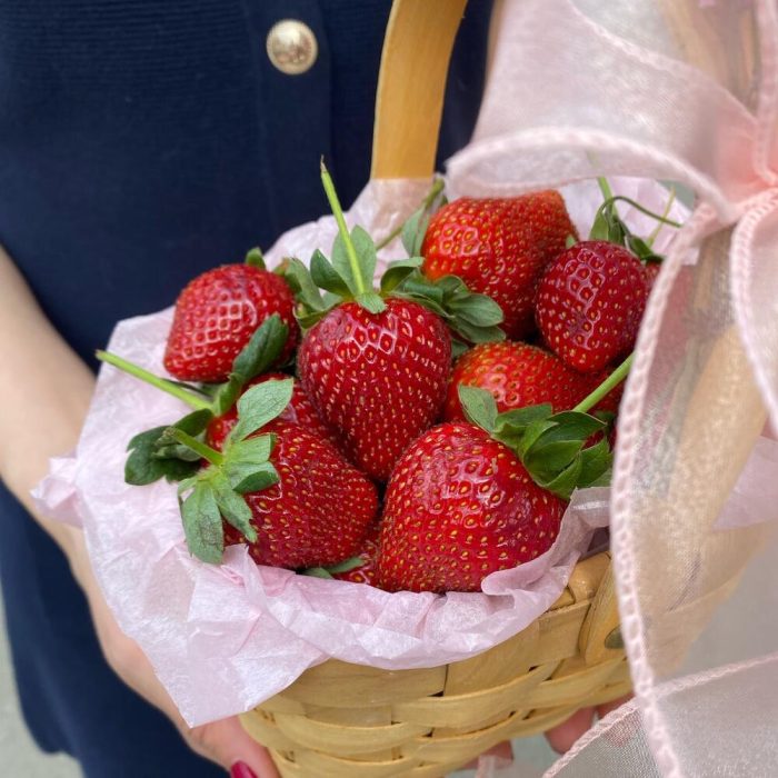Гипсофила – 1 шт.Корзина плетеная – 1 шт.Клубника грамм – 450 шт.