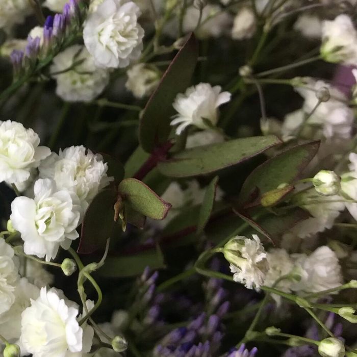 Гипсофила – 5 шт.Лимониум – 2 шт.Эвкалипт – 2 шт.Флористическая губка – 1 шт.Корзина плетеная – 1 шт.