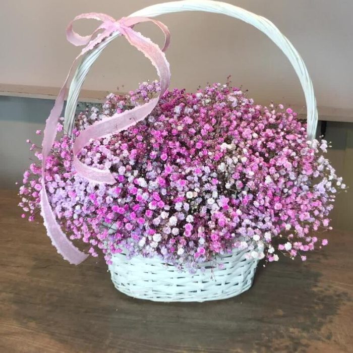 Корзина плетеная – 1 шт.Оазис флористический – 1 шт.Гипсофила – 21 шт.Лента – 1 шт.
