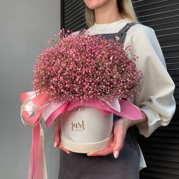 Розовая гипсофила в коробке