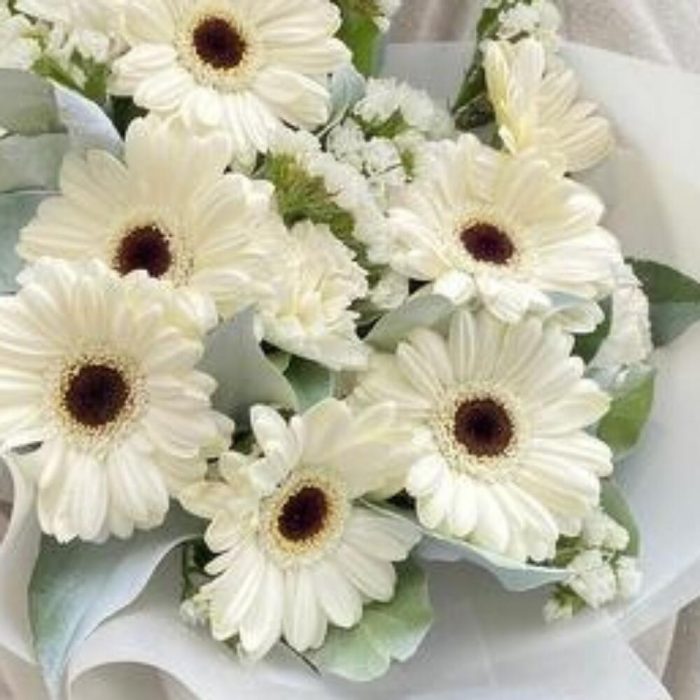 Гербера – 9 шт.Статица – 2 шт.Салал – 5 шт.Упаковка – 3 шт.Гвоздика – 3 шт.Сумка крафт – 1 шт.