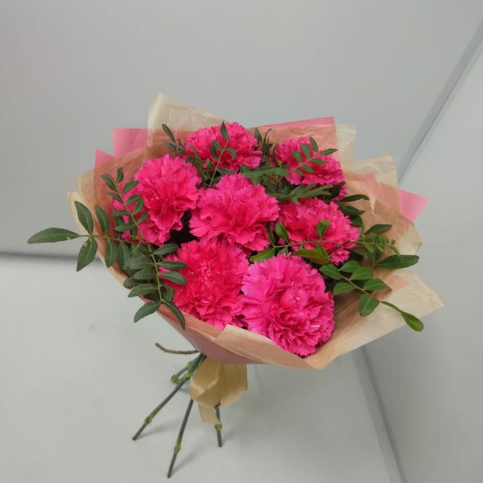 Букет из 7 гвоздик малиновых с фисташкой