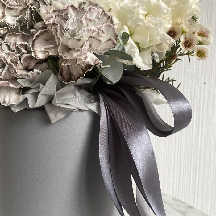“Атлас☁️” – цветочная композиция с зефиром в деревянном ящике