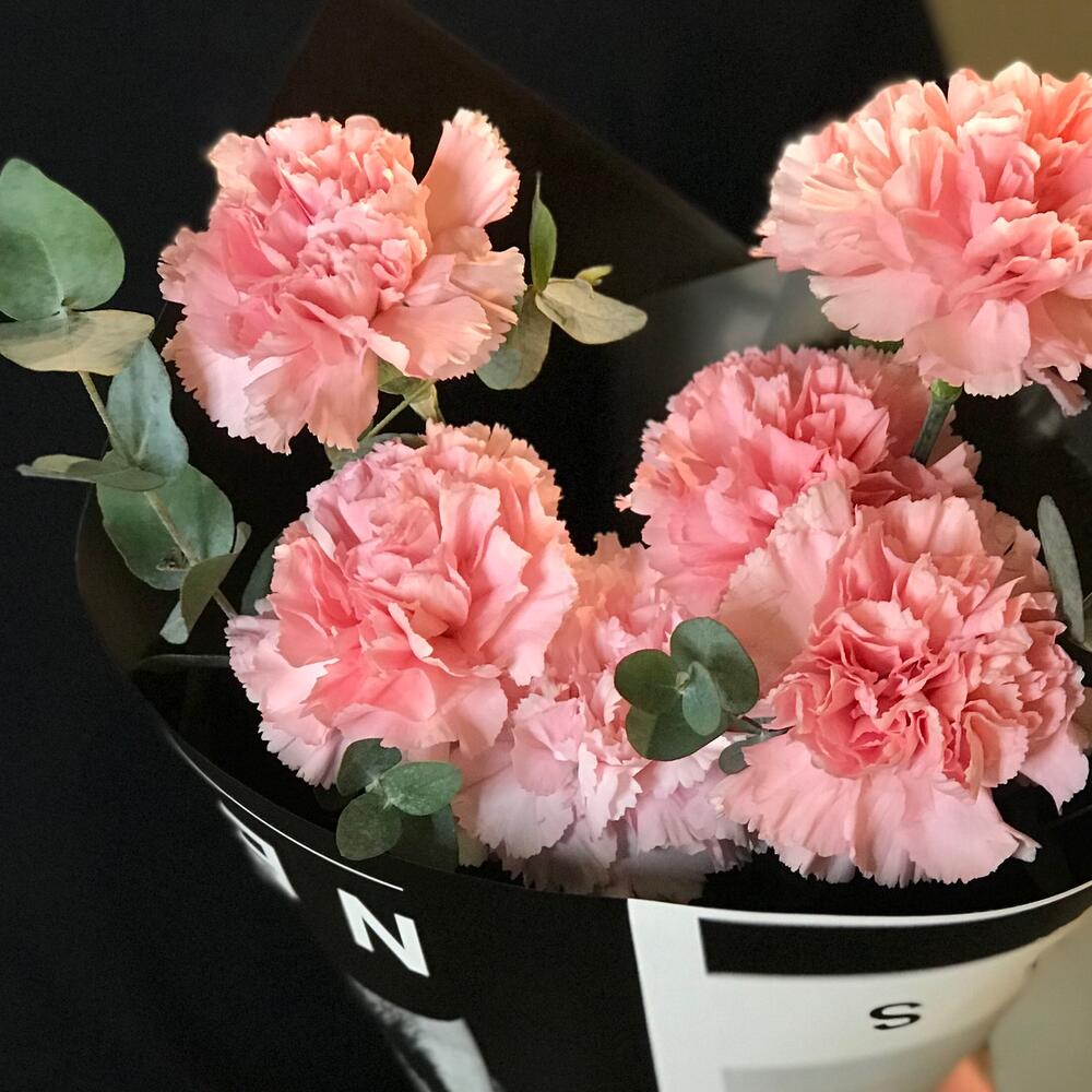 11 нежных гвоздик с эвкалиптом