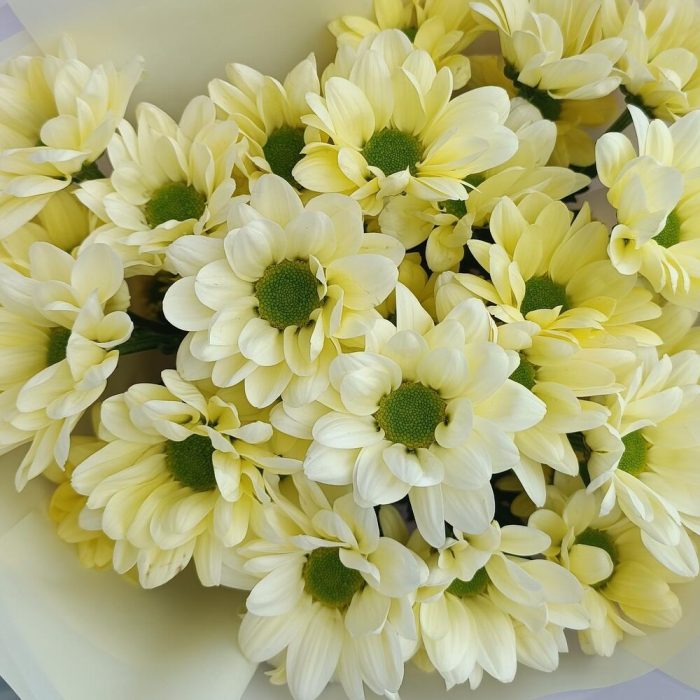 Букет весёлых ромашек, нежного лимонного цвета поднимет настроение по любому поводу.