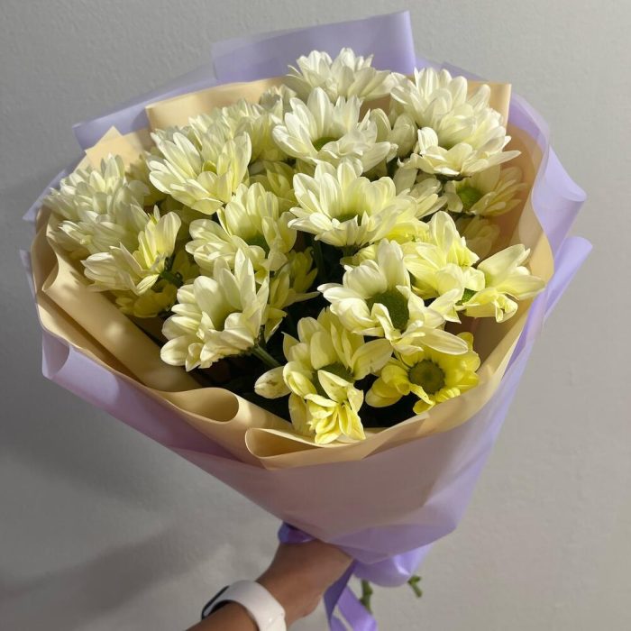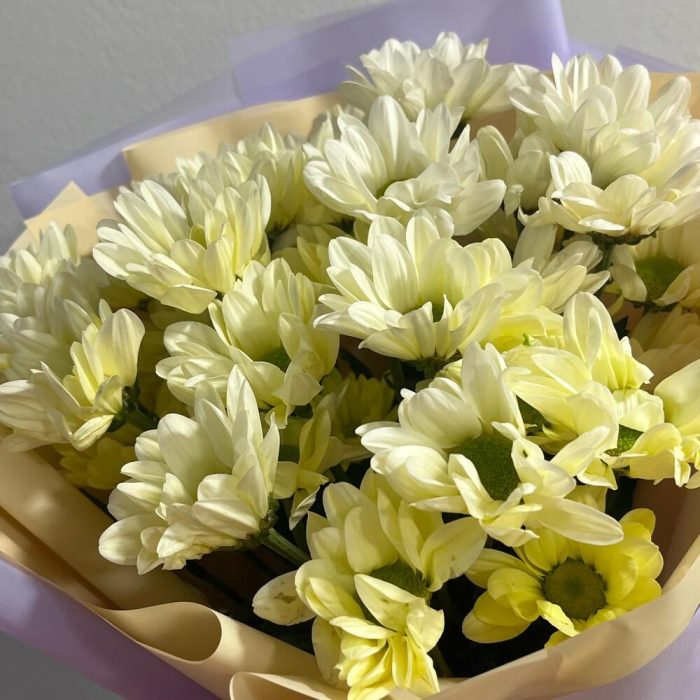 Упаковка дизайнерская – 1 шт. хризантемы кустовые – 3 шт.