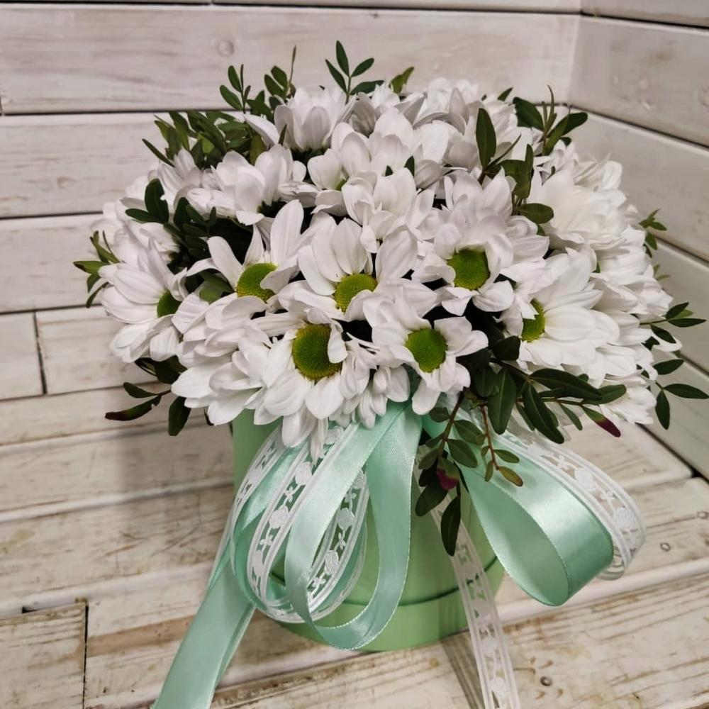 Хризантема кустовая – 11 шт.Фисташка – 7 шт.Коробка – 1 шт.