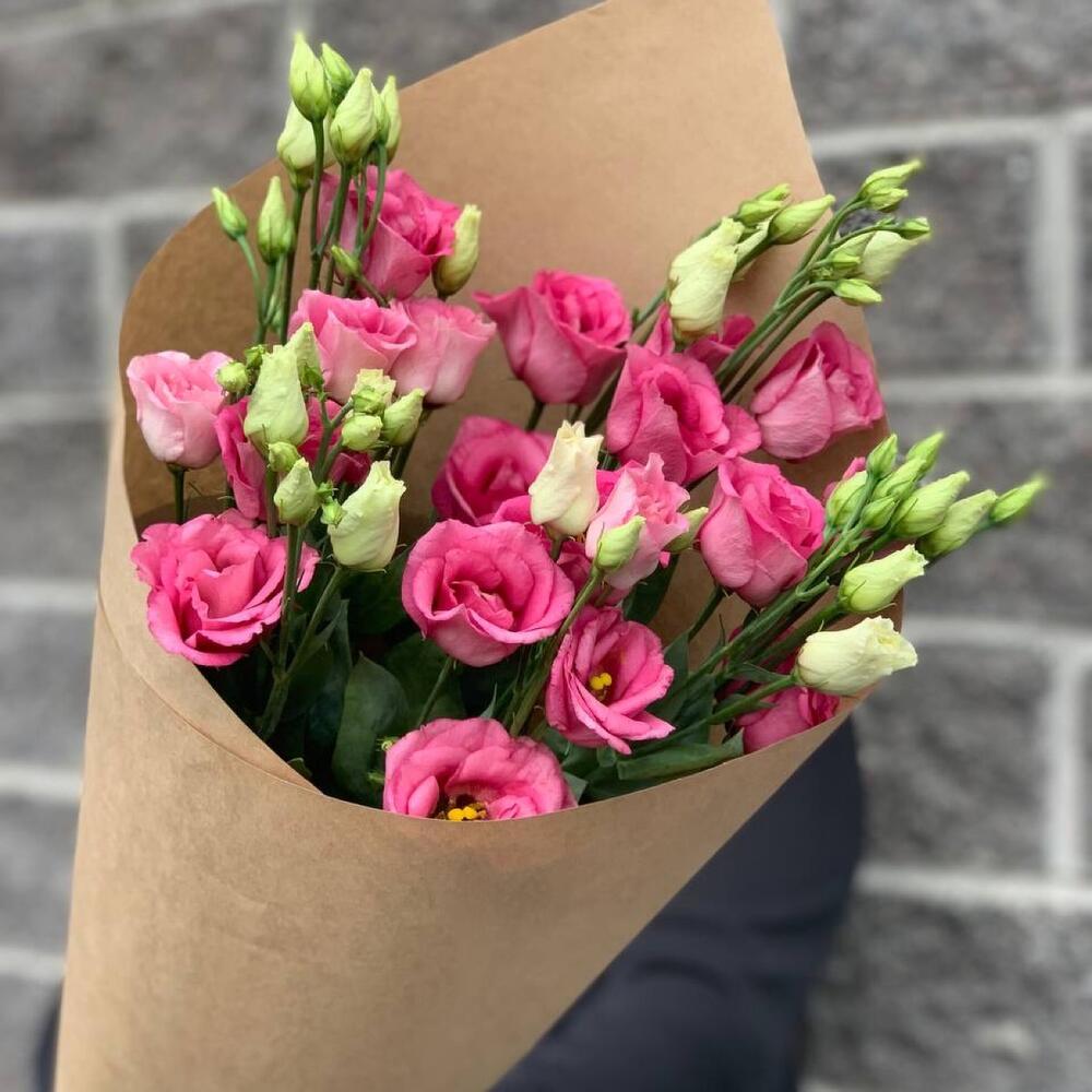 Эустома – 5 шт.Крафт упаковка – 1 шт.бечевка натуральная – 1 шт.