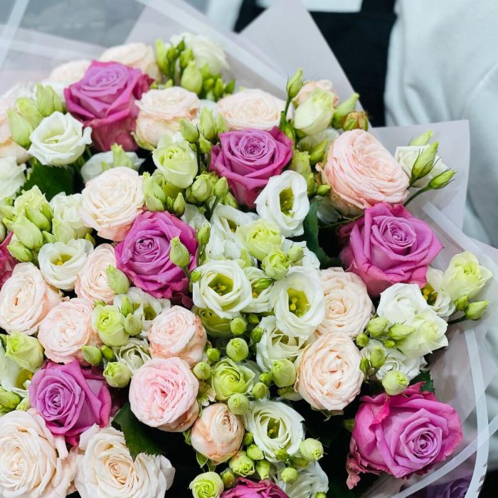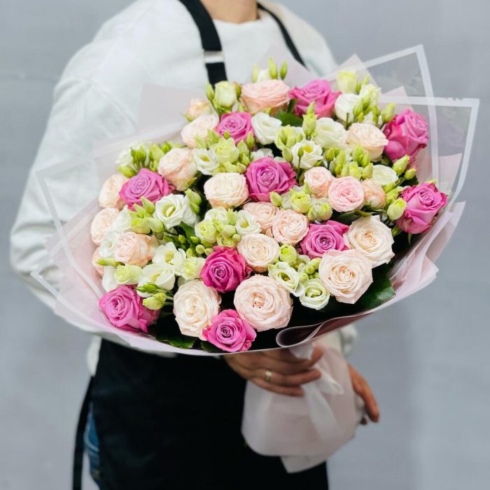 Букет в таком сочетании нежности и легкости подарит только самые искренние и положительные эмоции. А стильная упаковка отлично дополняет его.Уход :1. После доставки букета обязательно подрежьте стебли на 1-2 см под косым углом.2. Налейте воду в вазу минимум 2/3 от высоты букета . 3. Меняйте воду , мойте вазу и подрезайте стебли каждый день. 4. Храните Цветы подальше от солнечных лучей, тепло-обогревателей, фруктов и сквозняков. 5. Если букет был доставлен в минусовую температуру, дайте цветам полежать 15-20 минут для того , чтобы они могли принять комнатную температуру. Затем подрежьте стебли и поставьте в вазу.