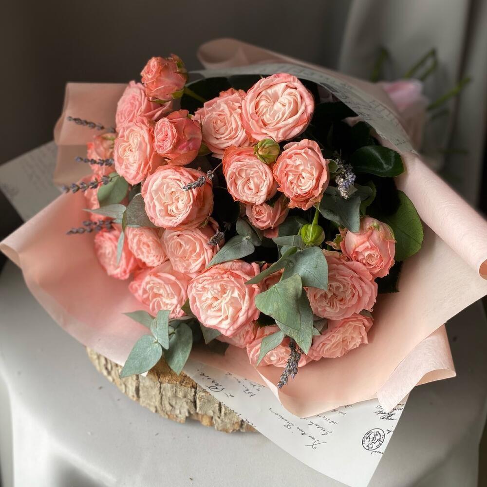 15 кустовых пионовидных роз сильва пинк. Букет 24 KimFlo