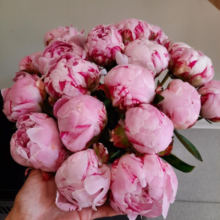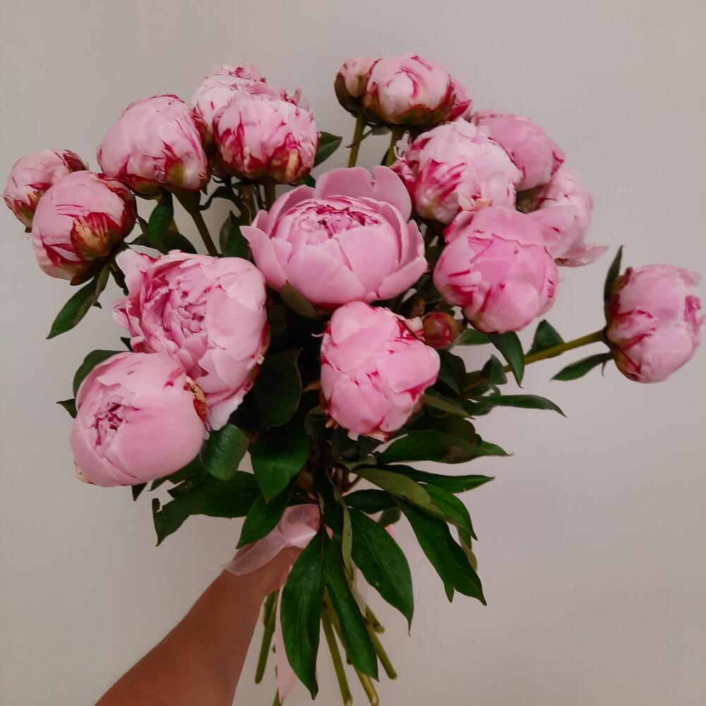 Пион Сара Бернар – 21 шт.Лента атласная – 1 шт.