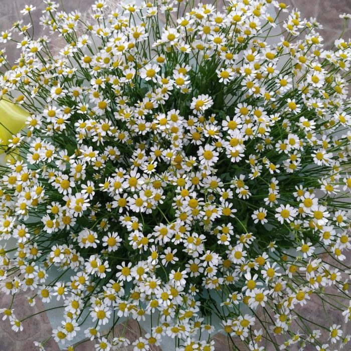 Матрикария (ромашка) – 19 шт.Упаковка дизайнерская – 1 шт.Лента атласная – 1 шт.