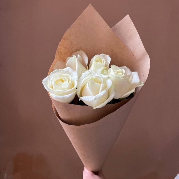 Крафт упаковка – 1 шт.Роза белая россия – 5 шт.