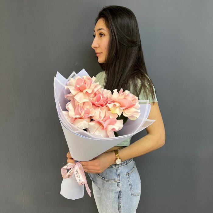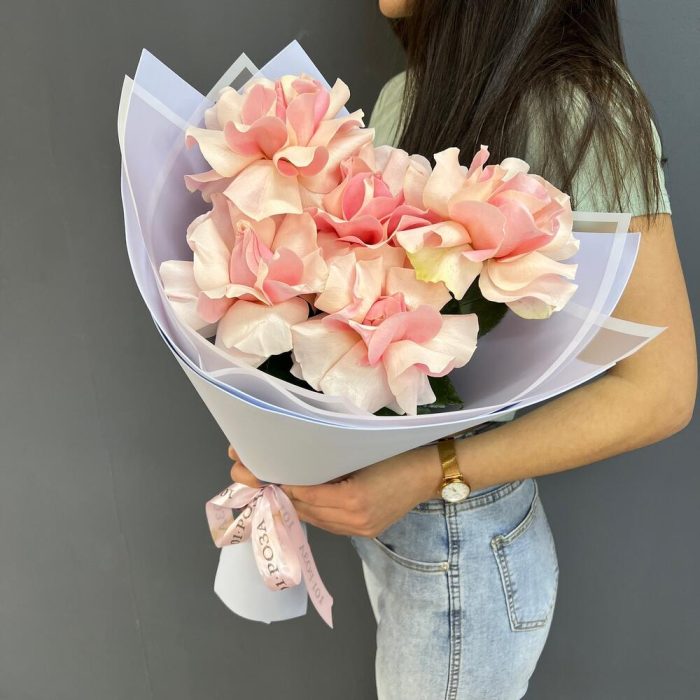 5 нежно-розовых французских роз