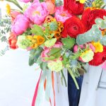 Акварельное лукошко с пионами, ранункулюсами и гортензиями