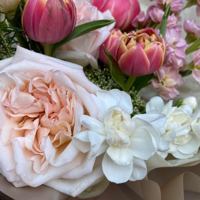 Категорий: Гвоздики, Кустовые розы, Пионовидные розы, Розы, Тюльпаны