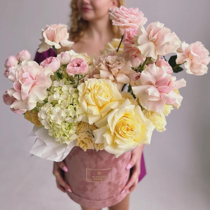“В твоих глазах”: нежная шляпная коробка с французскими розами