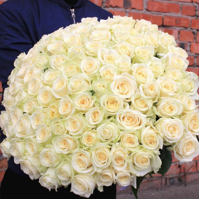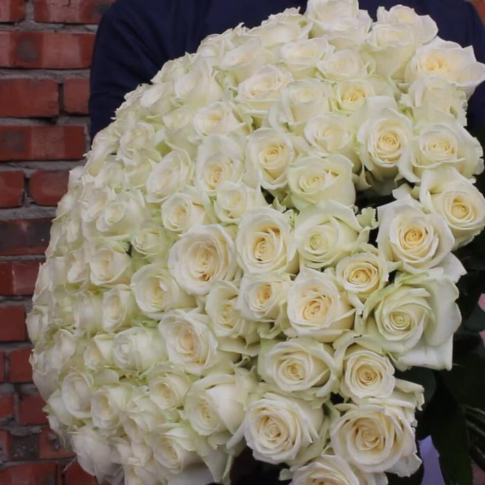 Лента атласная – 1 шт.Роза белая 60 см – 101 шт.