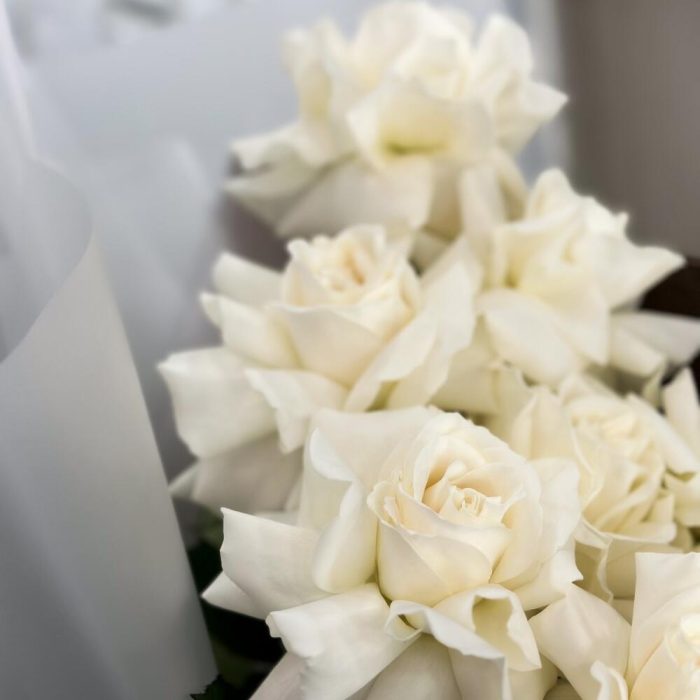 Лента атласная – 1 шт.Пленка матовая – 3 шт.подкормка для срезанных цветов – 1 шт.инструкция по уходу за цветами – 1 шт.роза плайя бланка – 9 шт.
