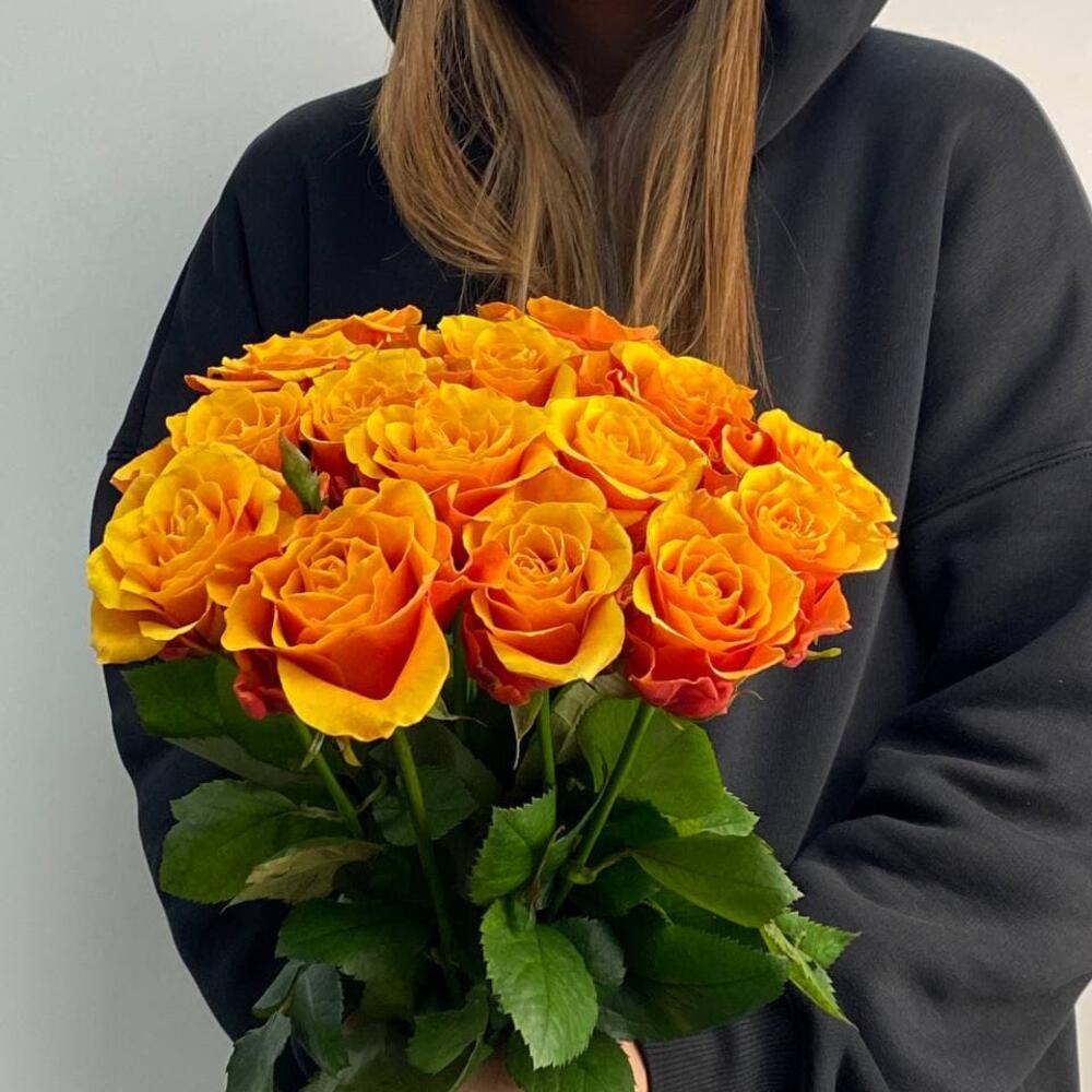 роза сорта испания – 15 шт.Лента атласная – 1 шт.