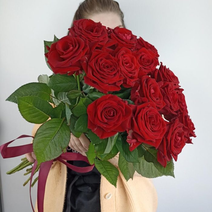 Лента атласная – 1 шт.Роза Россия – 15 шт.