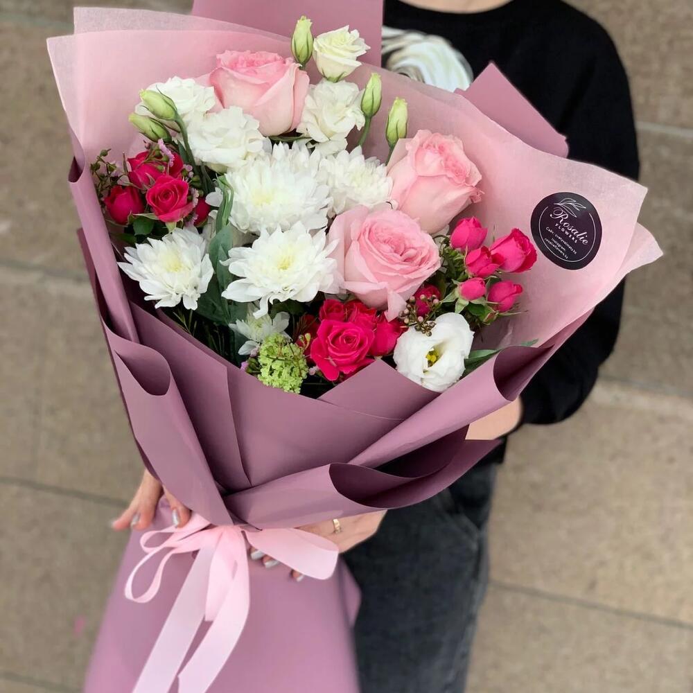 Гвоздики, Кустовые розы, Лизиантусы, Пионовидные розы, Розы