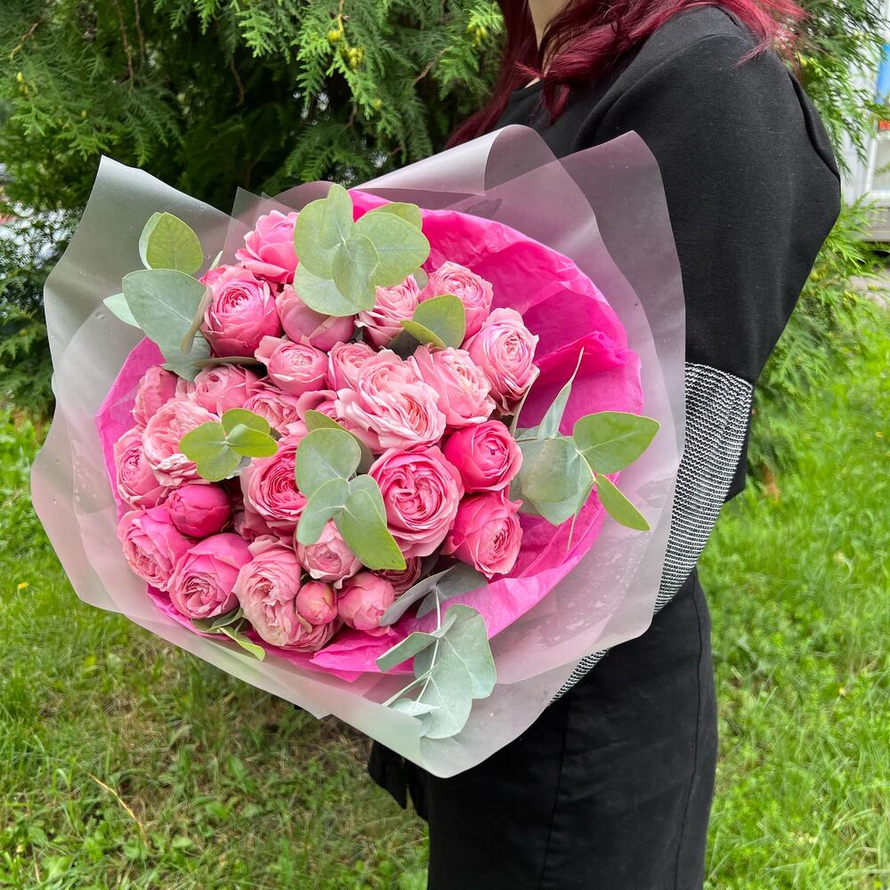 Букет пион роз с эвкалиптом (СБ 003)
