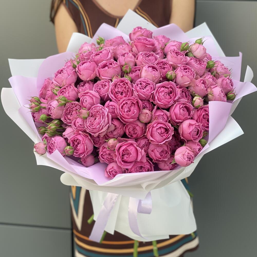 Писташ – 7 шт. Оформление – 1 шт. кустовая пионовидная роза misty bubbles – 25 шт.