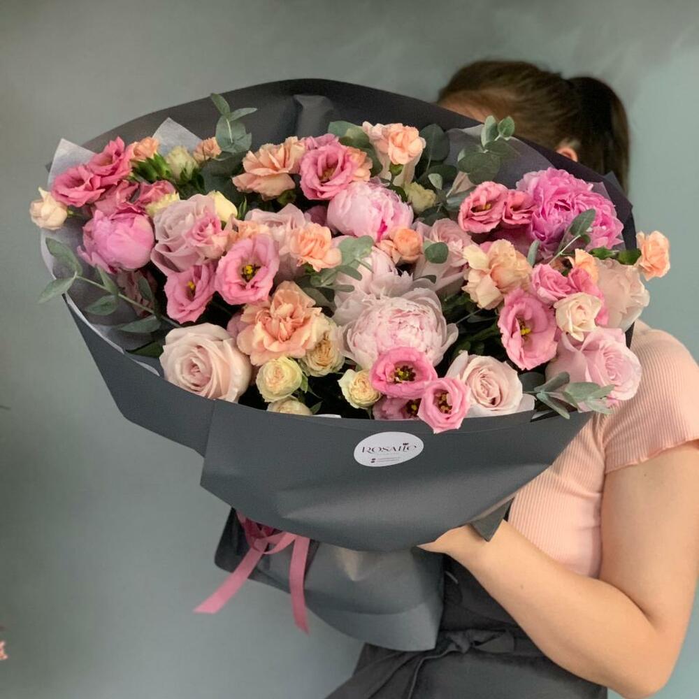 Гвоздики, Лизиантусы, Розы, Тюльпаны