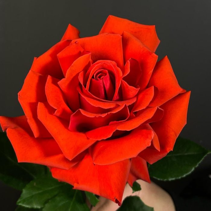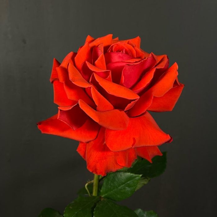 Роза насыщенного ало-красного цвета. Высота 50 см. крупный бутон