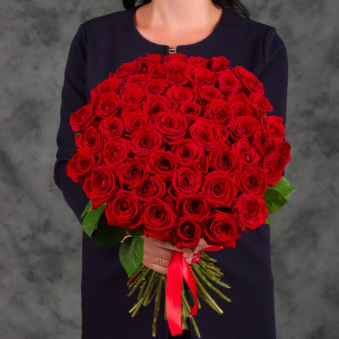 Классический букет из 55 красных роз.