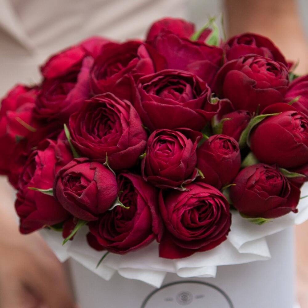 Шляпная коробка – 1 шт.Пионовидная кустовая роза – 15 шт.Флористическая губка (оазис) – 1 шт.
