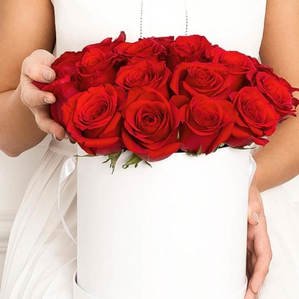 Роза – 25 шт.Шляпная коробка – 1 шт.Флористическая губка – 1 шт.