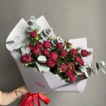 Этот яркий букет состоит из кустовых красных роз и может быть украшен зеленью и другими дополнительными элементами, чтобы придать ему более выразительный вид.