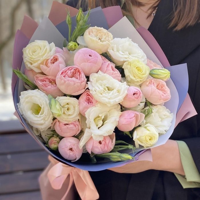 Кустовые розы, Лизиантусы, Пионы, Розы, Хризантемы