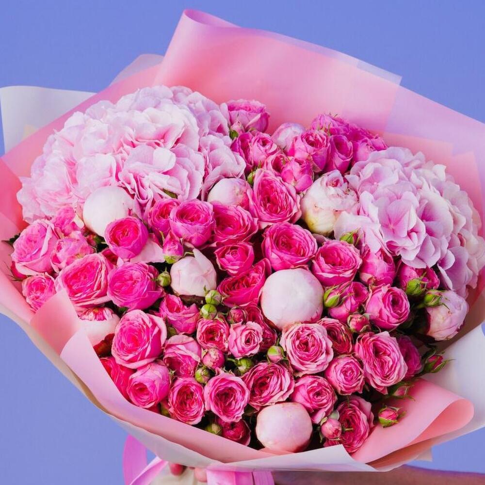 Категории: Гортензии, Кустовые розы, Пионовидные розы, Розы