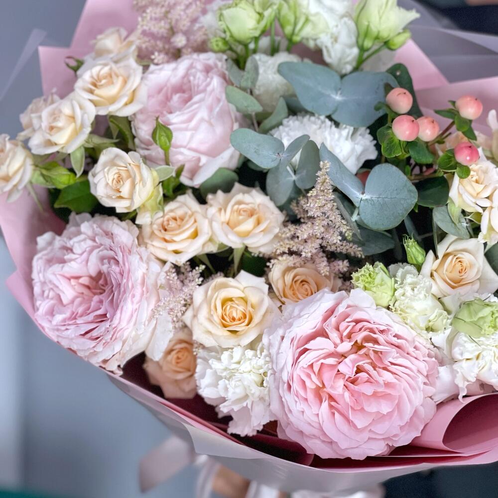 Категорий: Гвоздики, Кустовые розы, Лизиантусы, Розы, Хризантемы