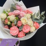 кустовые пионовидные розы – 11 шт. Упаковка дизайнерская – 1 шт. Открыточка с вашими пожеланиями – 1 шт. инструкция по уходу за цветами – 1 шт.