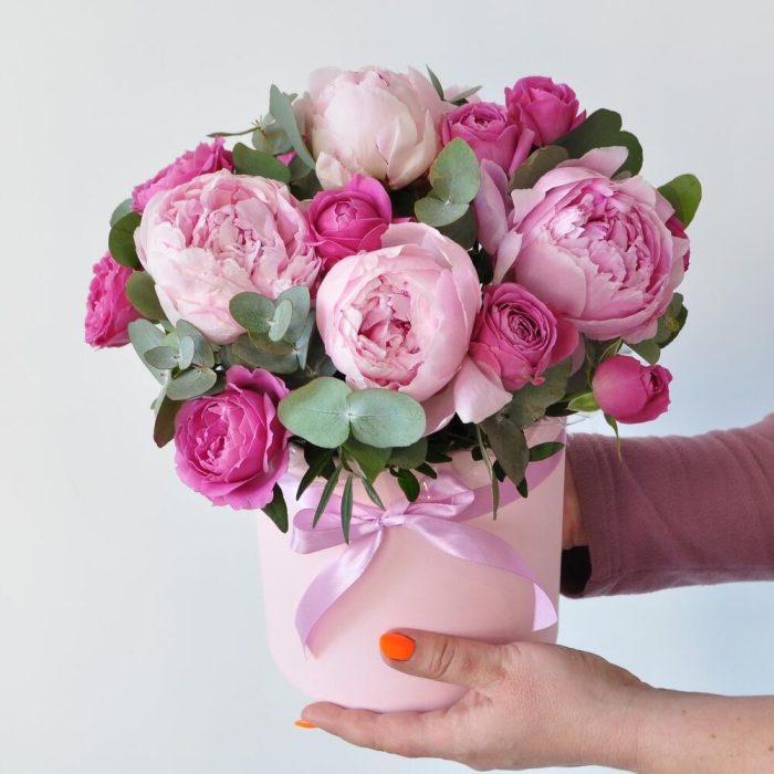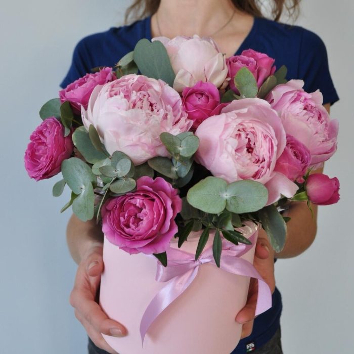 Пионы и розы в коробке