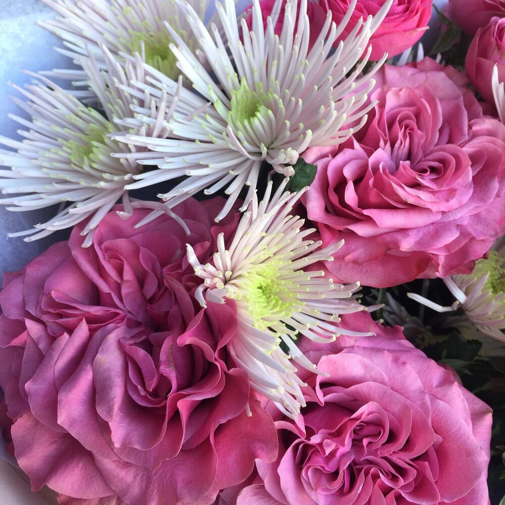 Гвоздики, Кустовые розы, Пионовидные розы, Розы