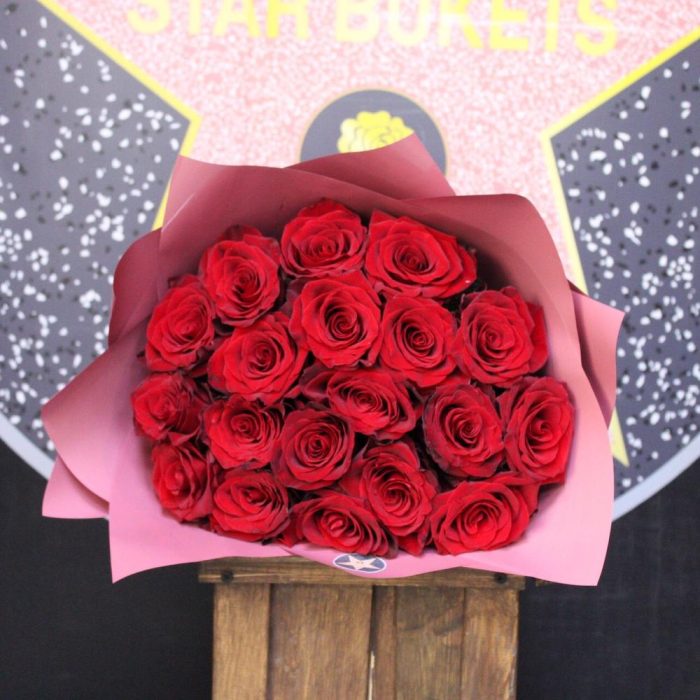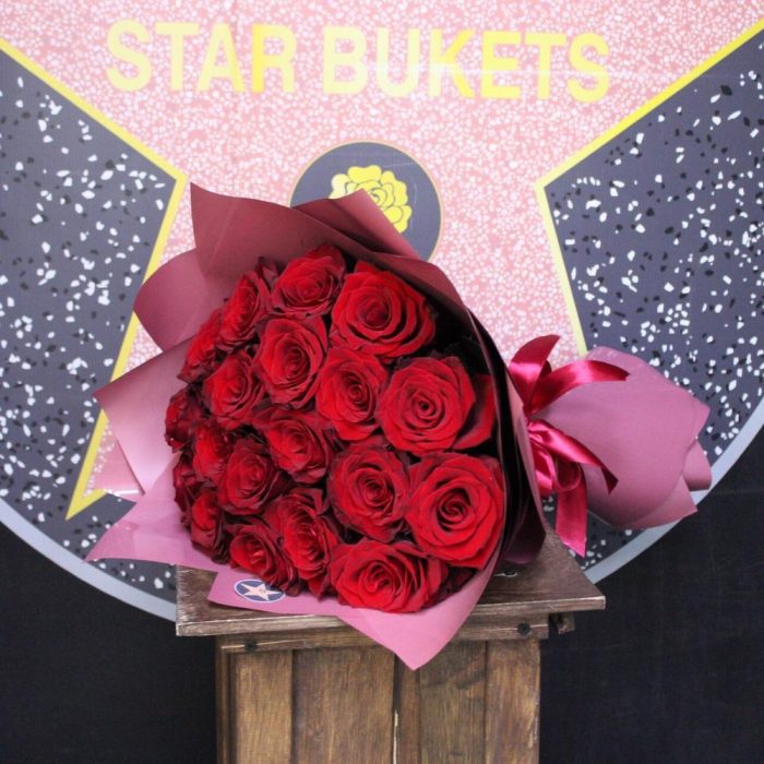 Букет из 25 роз красных в крафте