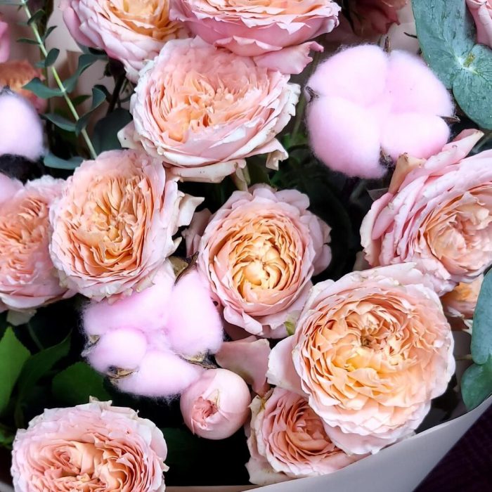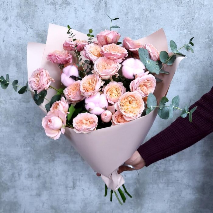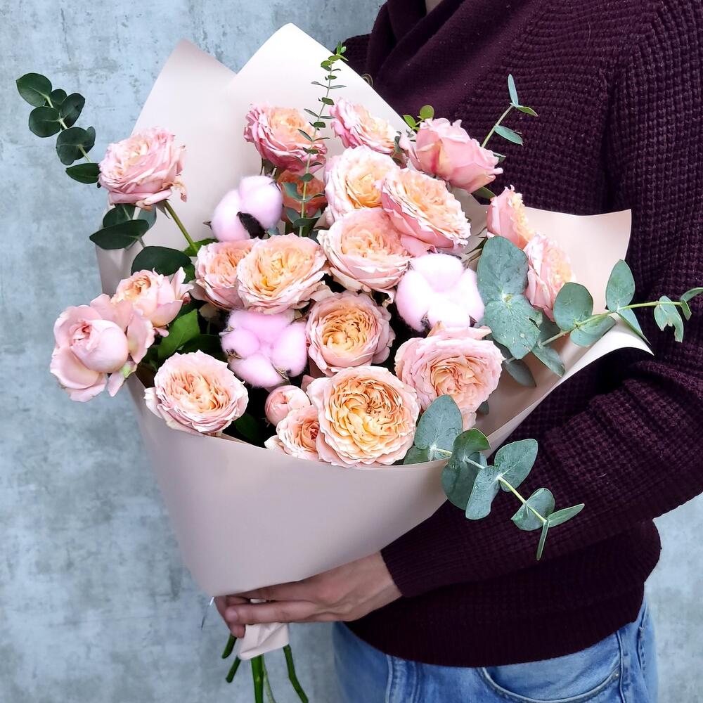 Гвоздики, Кустовые розы, Лизиантусы, Пионовидные розы, Розы