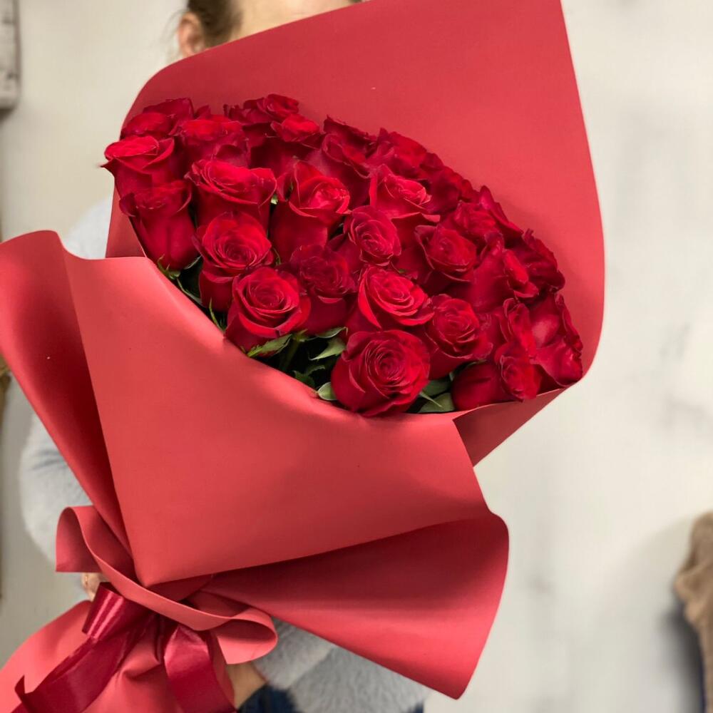 розы эквадор (60 см) – 35 шт.Фоамиран (упаковка) – 2 шт.Лента атласная – 1 шт.