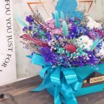 “Сиреневый туман” – композиция из гипсофилы в шляпной коробке