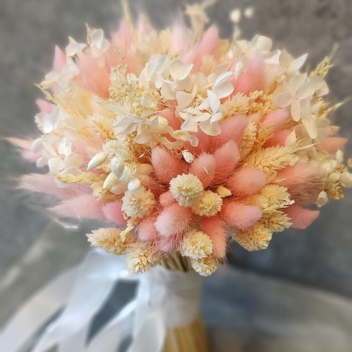 Свадебный букет из сухоцветов, оптимальный вариант для тех, кто хочет сохранить букет и не переживать за цветы в день свадьбы. Не завянет, не потеряет форму . Букет собираем заранее, возможны ваши пожелания. Всегда стараемся делать как на фото, но цветочек индивидуален, … Показать ещёпоэтому всегда есть свои особенности .